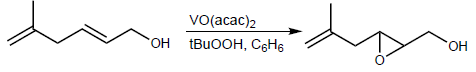 El VO(acac)2 con hidroperóxido de tert -butilo epoxida de forma selectiva alquenos que tienen un grupo hidroxilo en posición vecina (sistemas alílicos)