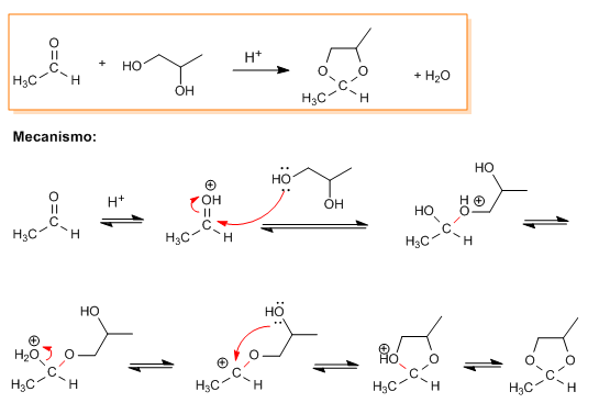 Von German Fernandez, 27. Februar 2024 Problema 1. Escribir el mecanismo para la formación el acetal entre etanal y 1,2-propanodiol.SOLUCIÓN: Links für das Blättern im Buch Solución Problema 1 (Aldehídos y cetonas) Problemas Resueltos de Aldehídos y cetonas (parte 1) Nach oben Solución Problema 2 (Aldehídos y cetonas)
